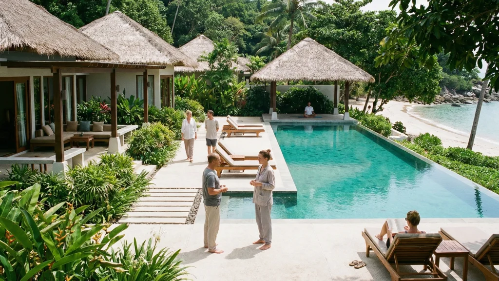 Resort-Style Accommodation: Private villas, pools, and gyms.